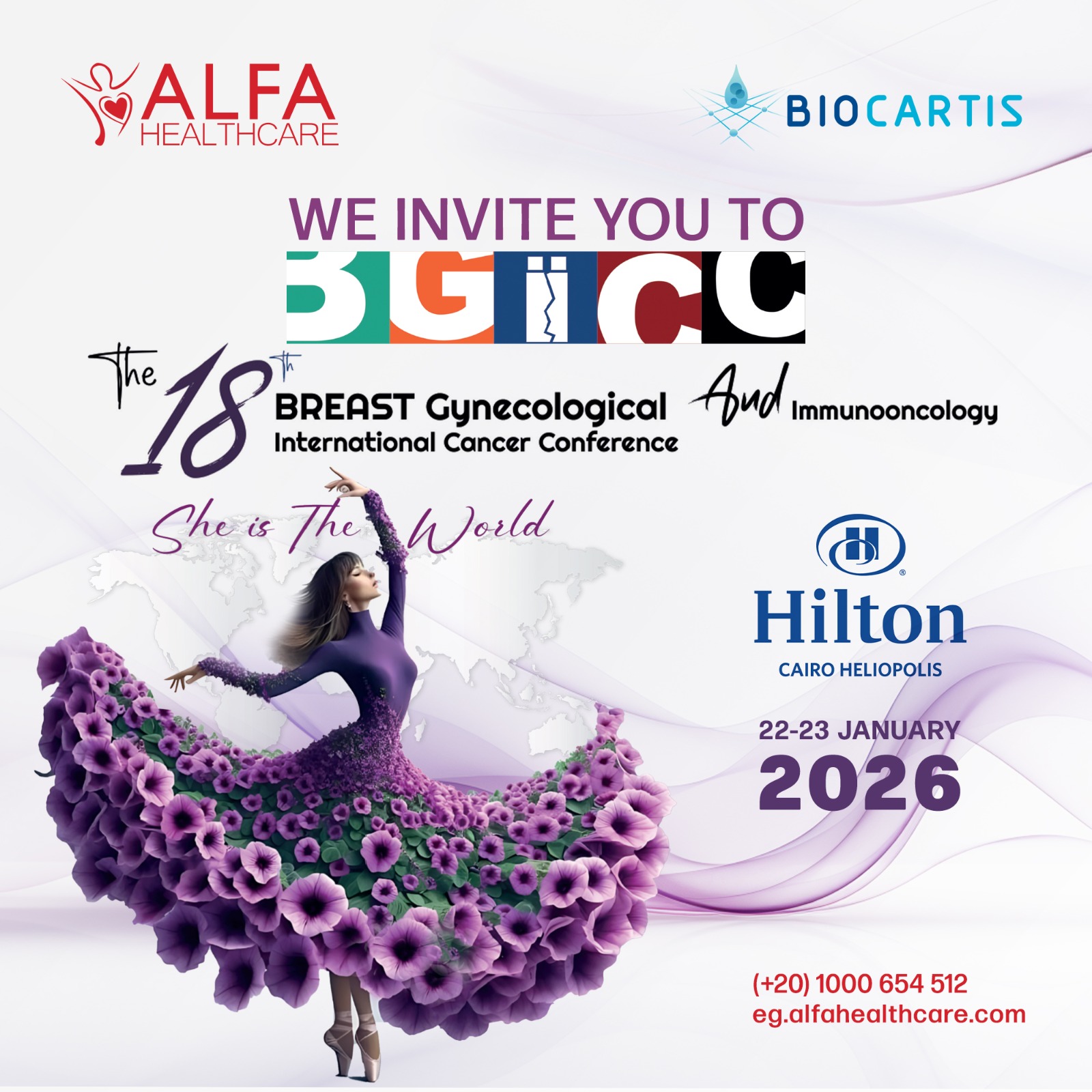 Held on 22–23 January 2026 at Hilton Cairo Heliopolis, Cairo – Egypt, under the theme “𝐒𝐡𝐞 𝐢𝐬 𝐭𝐡𝐞 𝐖𝐨𝐫𝐥𝐝”, the event highlighted the importance of collaboration, innovation, and science-driven approaches in advancing cancer diagnostics and patient care.