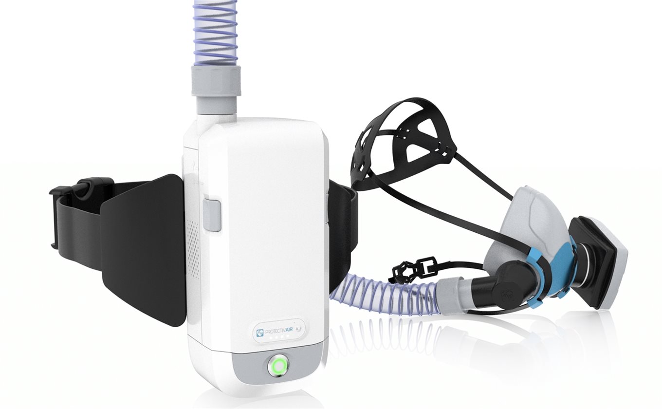 ProtectivAIR® comprises a UV-C disinfection chamber worn on a belt or harness which is connected to a comfortable face mask. Within the chamber, energetic UV-C photons pass through the infectious micro-organisms, damaging their nucleic acid (RNA or DNA) which disables their ability to replicate and infect the body.
